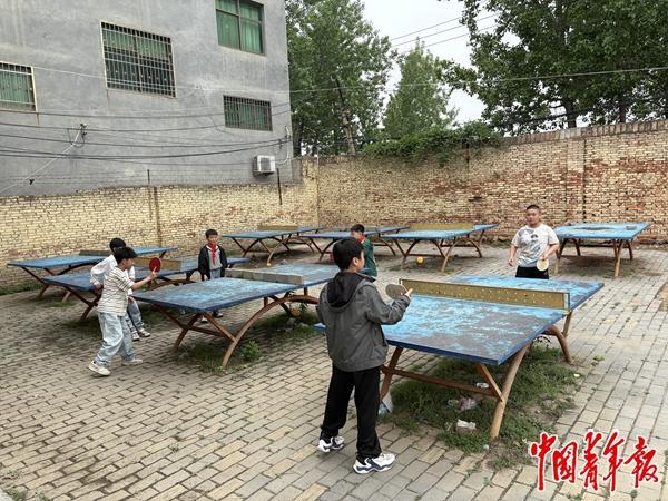 4月21日,河南登封大金店镇五小的小学生们在课间打乒乓球。中青报·中青网记者 李新玲/摄