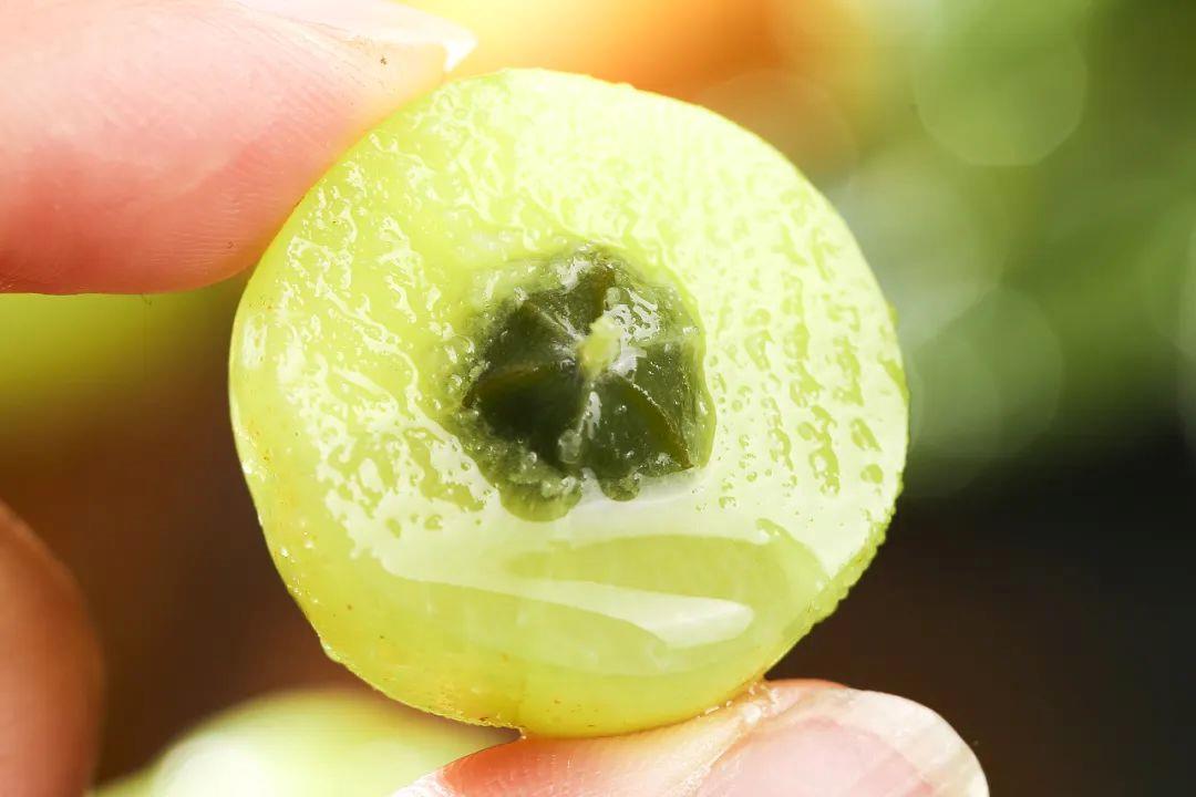 如果你是第一次吃油柑,会明显感受到又酸又涩,简直难以下咽,但咽下后,又能感受到喉咙中有一丝甘甜,这也就是大家常说的“5秒回甘”。正因为它“初食极酸涩,良久乃甘”,所以得名余甘子。