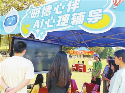 华南农业大学“耕耘心灵·绿意成长”活动现场,智能交互屏中的AI心理助手正通过语义分析,精准识别学生思想动态。学校供图