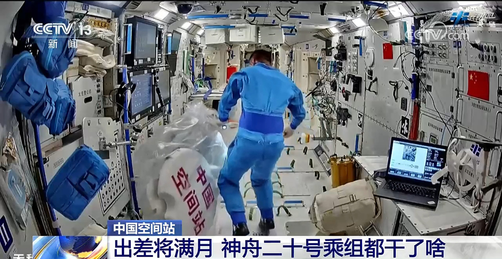 央视网消息:自4月25日进驻中国空间站以来,神舟二十号乘组三名航天员陈冬、陈中瑞、王杰已在轨近一个月了,下面我们就来看看他们这一个月来的工作成绩。