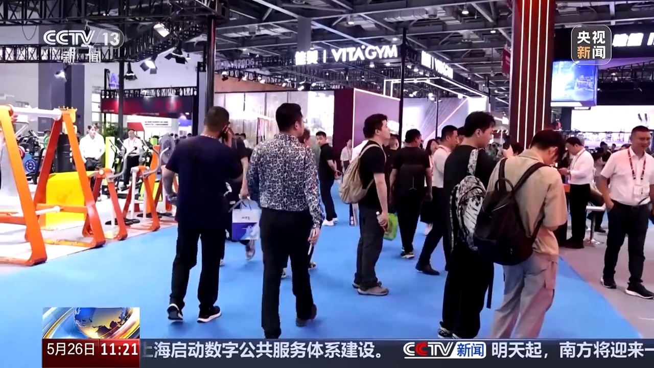 参展商 张硕潮:这次展览我们带来了很多高科技的体育产品,AI划船机通过虚拟场景,结合实时数据监测和人工智能算法,给用户带来竞技和趣味性相结合的体验。目前,已有30多位意向客户达成合作洽谈,远超我们预期。