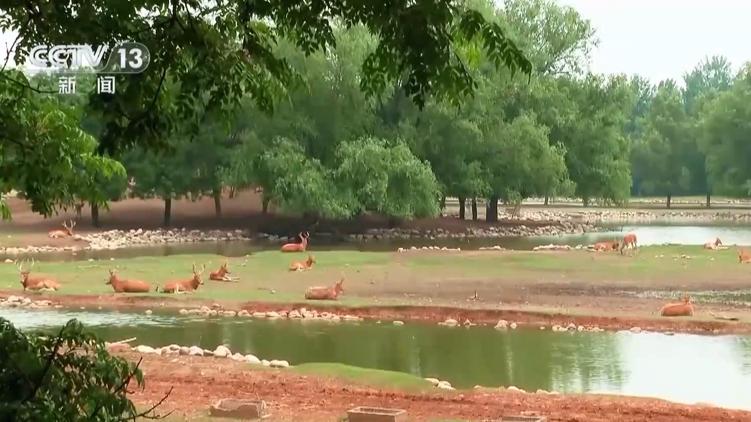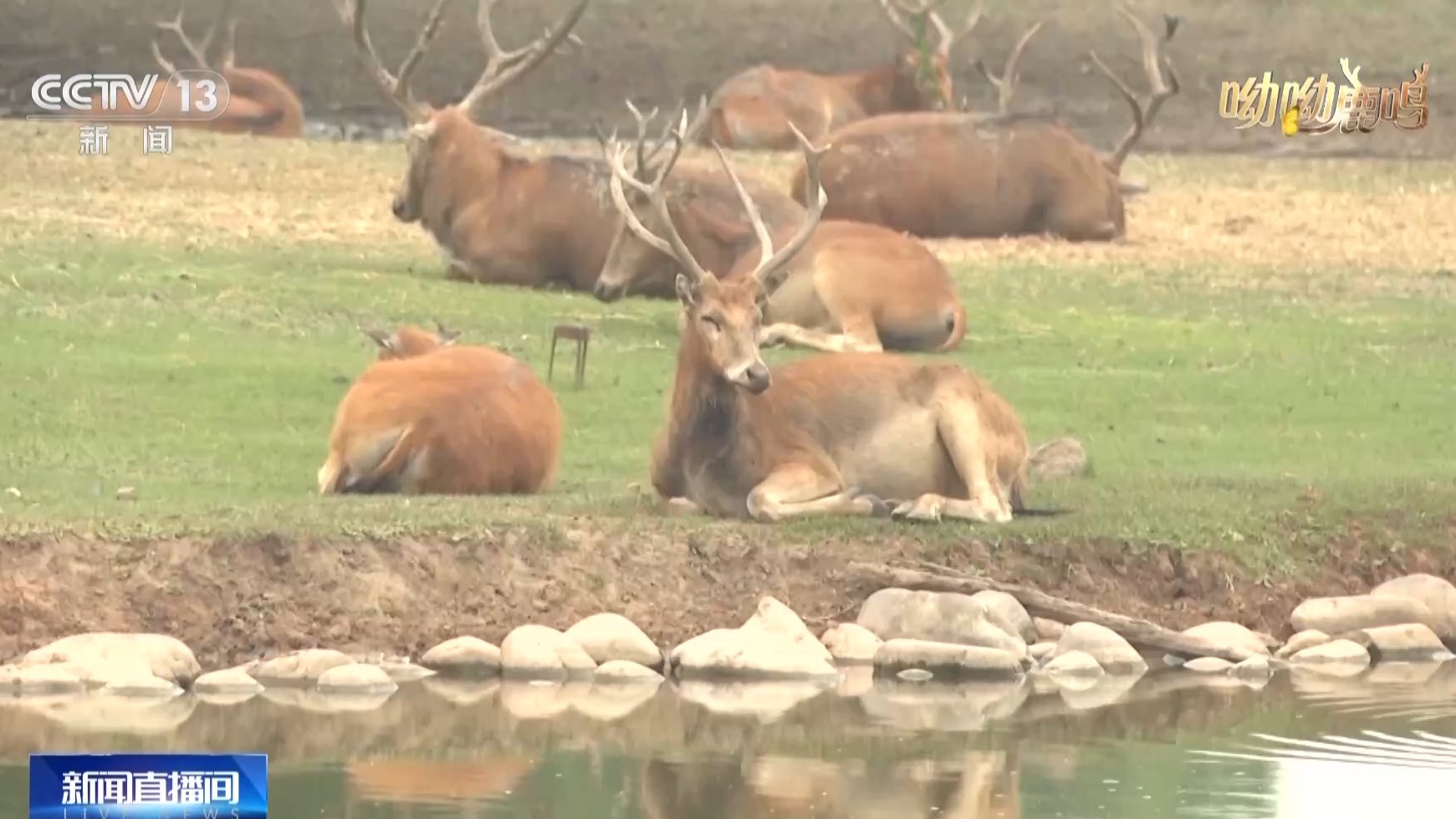 北京麋鹿生态实验中心主任、研究员 白加德:这“三步走”就是第一步我们利用10多年的时间进行麋鹿种群的复壮。第二步,要在全国适合于麋鹿生活的地方进行迁地种群的建设。第三步,进行野化放归的工作。从种群复壮、迁地建群到野化放归,麋鹿“三步走”都取得了明显成效。现在全国麋鹿数量从一开始1985年之前的0,已经增加到了2024年底的1.4万只,是麋鹿基因库的来源。