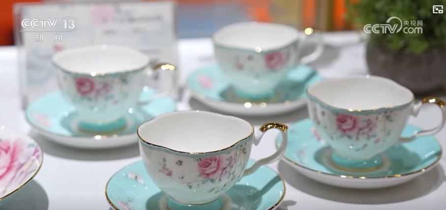 在“2025山东省外贸优品购物季”活动现场,一家陶瓷企业在忙着对接国内订单的同时,不断收到美国客户的订单。