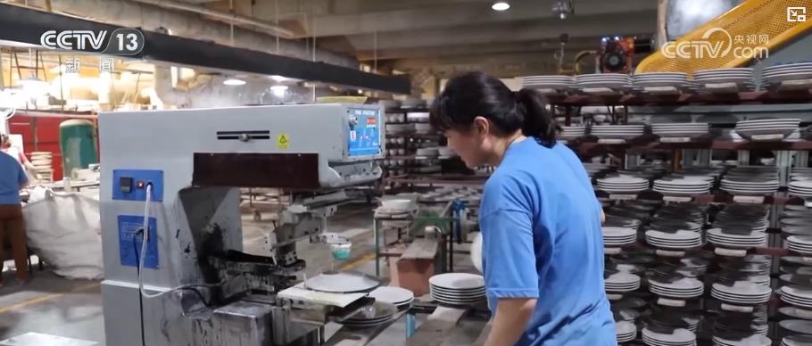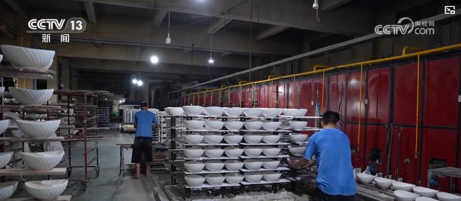 虽然是晚上九点多,记者在来到企业厂区时,生产车间灯火通明,工人正在对陶瓷产品进行滚压成形、施釉等工序,企业的销售负责人张斌告诉记者,他们企业两个厂区的6条生产线已经全部开启。