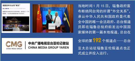 “媒体外交”创新开拓新局面。紧随元首外交步伐,与对象国政府机构和主流媒体签署合作文件130余份,数量再创新高。主办第三届全球媒体创新论坛、第十二届全球视频媒体论坛、“非洲伙伴”媒体行动、“一起看中国”系列活动等媒体活动,不断扩大知华友华朋友圈。