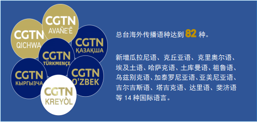截至2024年底,共开办51个电视频道、22套对内广播频率;采用82个传播语种、建设192个海外站点,构筑起遍布全球的海外传播格局;运维央视新闻、央视频、CGTN、云听等19个新媒体客户端和央视网、央广网、国际在线3个中央重点新闻网站。