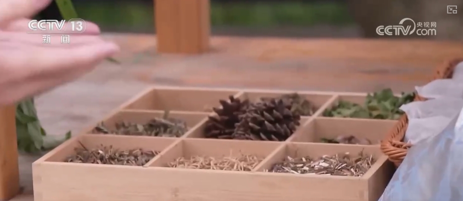 师傅熬煮草药水,这也是古籍中记载的沐兰汤。到了端午这一天,当地家家户户都上山采各种草药回来,比如有艾草、菖蒲、白兰花、柚子叶等,用它们来煮草药水,沐浴、泡脚,有去除晦气的寓意。现在,也逐渐演化成洗手或者擦拭。除了煮草药水,百姓们还会将艾草和菖蒲挂在门上,驱蚊、辟邪。 端午的时候,大家还会利用草药和香料制作香牌。