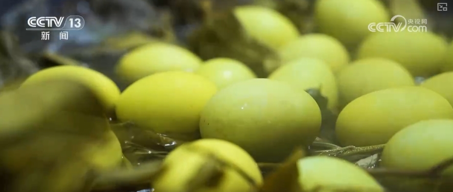 按照当地传统,制作午时蛋,要在端午节这天,用正午时分打上来的井水来烧煮,也就是“午时水”。煮蛋时,要先把午时草铺在锅底,再放入鸭蛋,接着加入午时水炖煮。慢慢地,鸭蛋会呈现出鲜艳的黄色,一口下去,满嘴草药清香。