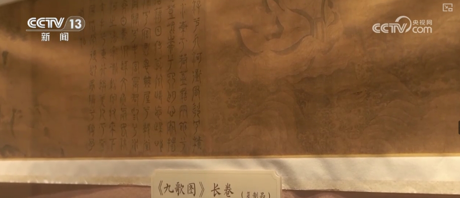 宋代李公麟根据屈原《楚辞·九歌》创作的纸本白描画作《九歌图》长卷,将《九歌》中的多个场景和人物依次置于屈原笔下的神话世界中。以“香草美人”为象征,体现对宇宙的诗意化叩问,寄托对美好品质的不懈追求。
