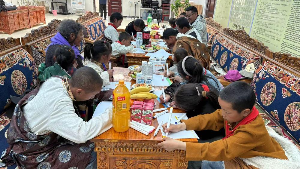 接下来再写点什么呢?围在一起的小脑袋们叽叽喳喳地提建议,“告诉北京的好朋友,我们这里有牦牛、羊群、马”“还有雄鹰、野狼、狐狸和土拨鼠”“很大很大的雪山、很多很多的湖泊”“别忘了告诉他们还有奇特的牛粪墙哈哈哈”……