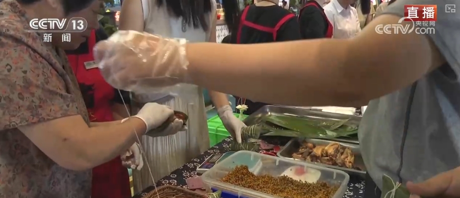 6月1日恰逢是端午和“六一”,现场节日的氛围是特别的浓厚。“且停亭”的上方悬挂粽子,寓意“高中”;门口的区域则还原了传统的“朱砂点痣”,为小朋友们送上祝福。现场还可以体验套粽子、射五毒等一些互动项目,南来北往的旅客都能在这儿沉浸式体验端午民俗,感受传统文化的魅力。