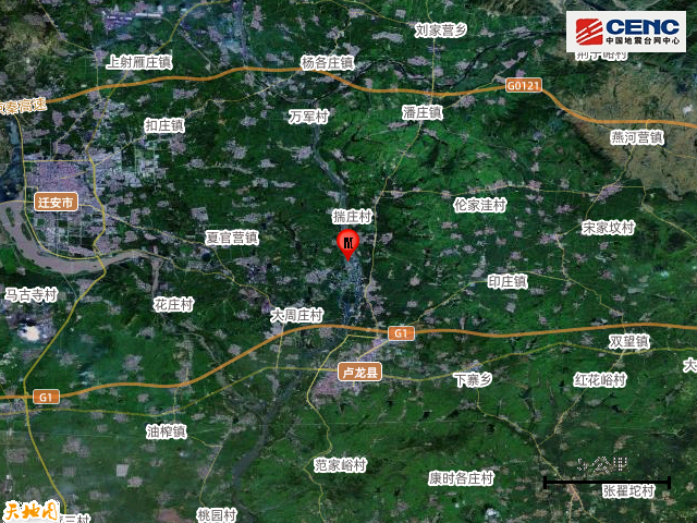 震中地形:震中5公里范围内平均海拔约50米。
