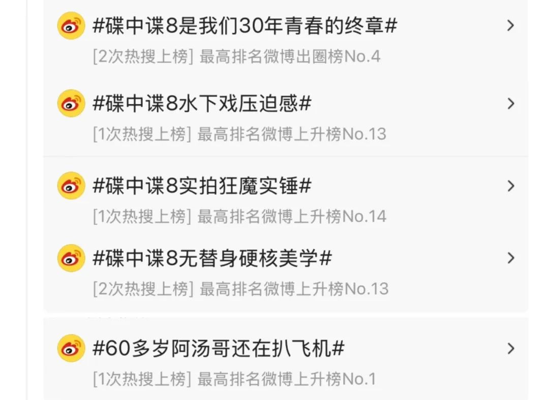 自定档以来,《碟中谍8:最终清算》各个平台宣发的主要话题始终是“《碟中谍》系列收官之作”、大场面实拍等。但对于大部分中国电影观众而言,大场面早已经屡见不鲜,“阿汤哥”、“碟中谍”也只是虽然熟悉但算不上情怀的名字。无论是情怀还是特技,《碟中谍8:最终清算》试图向中国观众营销的哪一类话题,都不足以构成买票观看的充足理由。