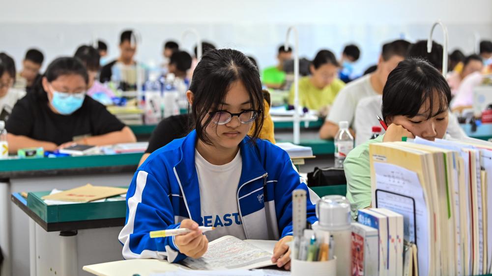 广西钦州市第二中学的考生们在备考(2023年6月6日摄)。新华社记者 张爱林 摄