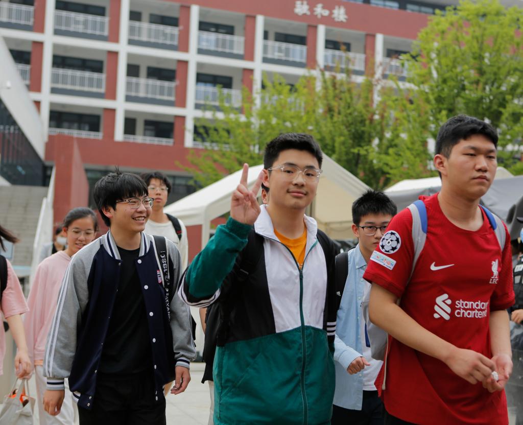 在太原市第四十八中学(高中部)考点,考生在上午考试结束后走出考场(2023年6月7日摄)。新华社记者 詹彦 摄