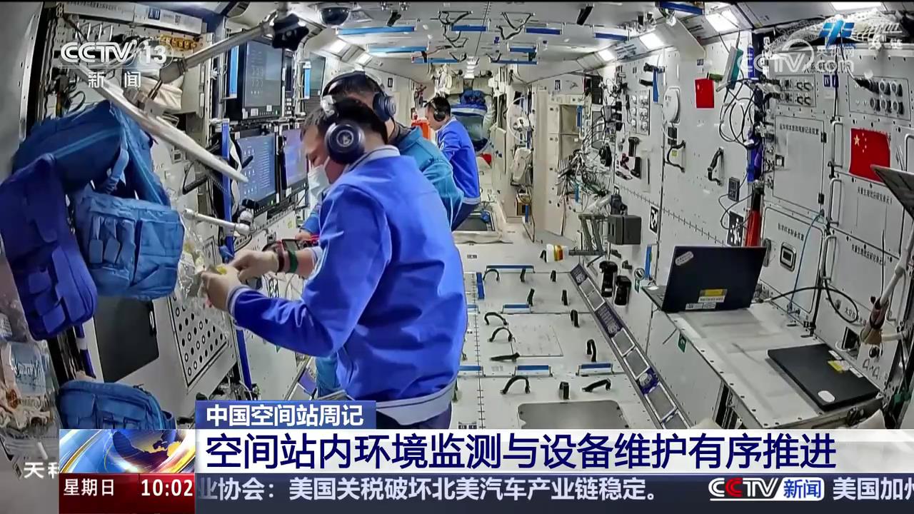 上周,乘组开展了站内环境监测,并对部分设备进行了维护与检测,完成了再生生保系统、乘员设备维护,湿度传感器备件加电测试,舱内设备噪声测量及降噪状态巡检等工作。