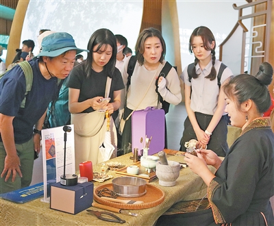 游客在大阪世博会中国馆内参观了解海南沉香。新华社记者 杨 光摄