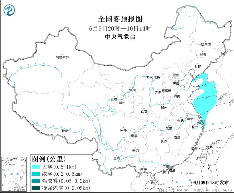 央视网消息:中央气象台6月9日18时继续发布大雾黄色预警,预计,6月9日夜间至10日上午,黄海大部海域、辽东半岛东部沿岸海域、成山头附近海域、长江口及杭州湾附近海域、舟山群岛附近海域、大连港、上海港、宁波港将有能见度不足1公里的大雾。