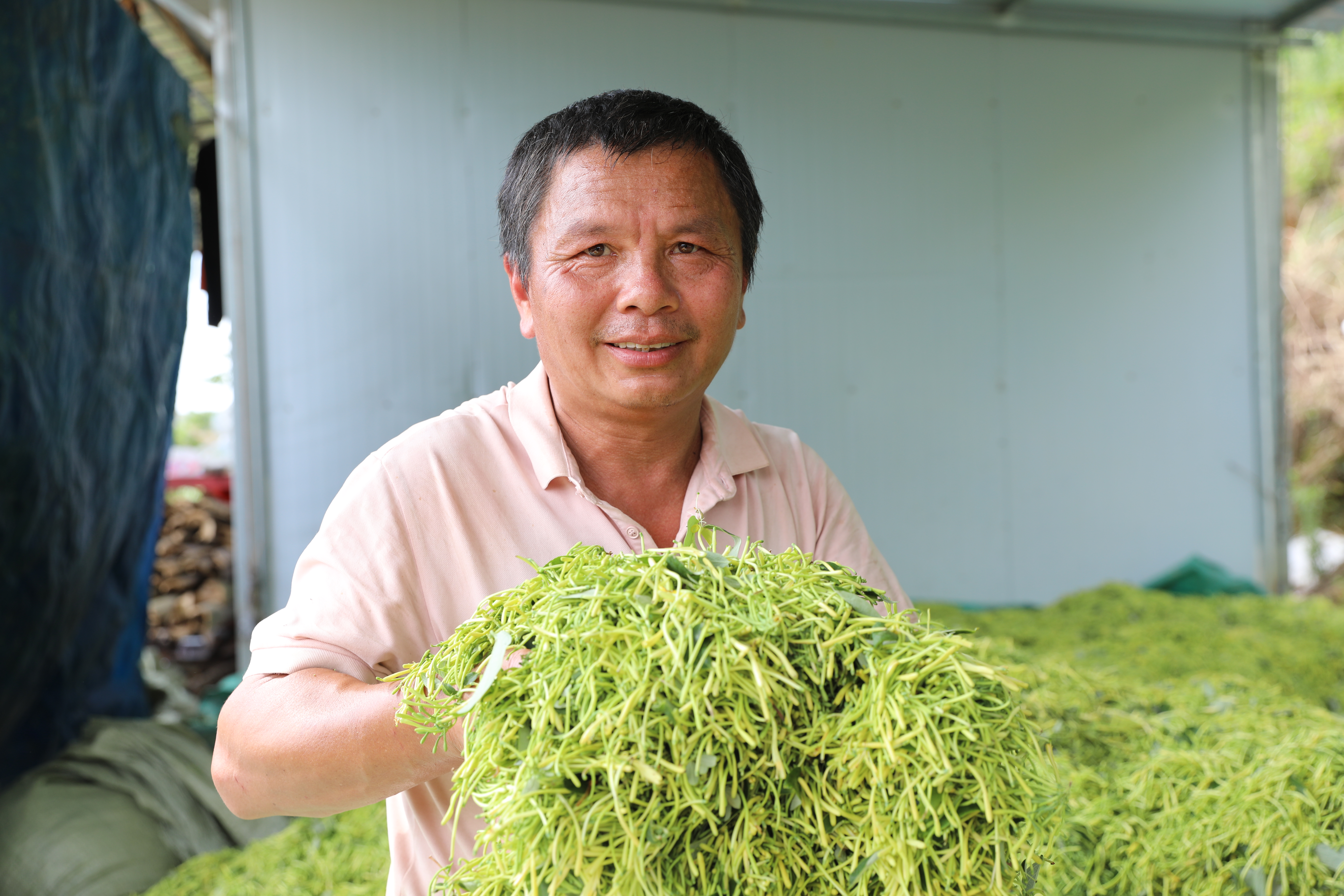 金银花种植基地里,连片的金银花一簇簇、一团团俏立枝头,空气中弥漫着淡淡的金银花香。30余名工人穿梭在金银花丛中,手指娴熟地将头茬花蕾收入背篓中。帮助基地进行采摘工作的大多是周边村民。“采摘按斤计价,七毛钱一斤,一天大概可以采摘200斤,基本上每天都有100多块钱收入,基地建在家门口,挣钱顾家两不误,比在外务工好得多。”村民张佑菊说。