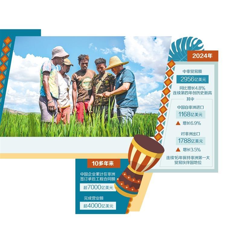 贸易规模稳步增长且屡创新高。2024年,中非贸易额达到2956亿美元,同比增长4.8%,连续第四年创历史新高。其中,中国自非洲进口1168亿美元,增长6.9%,对非洲出口1788亿美元,增长3.5%,连续16年保持非洲第一大贸易伙伴国地位。