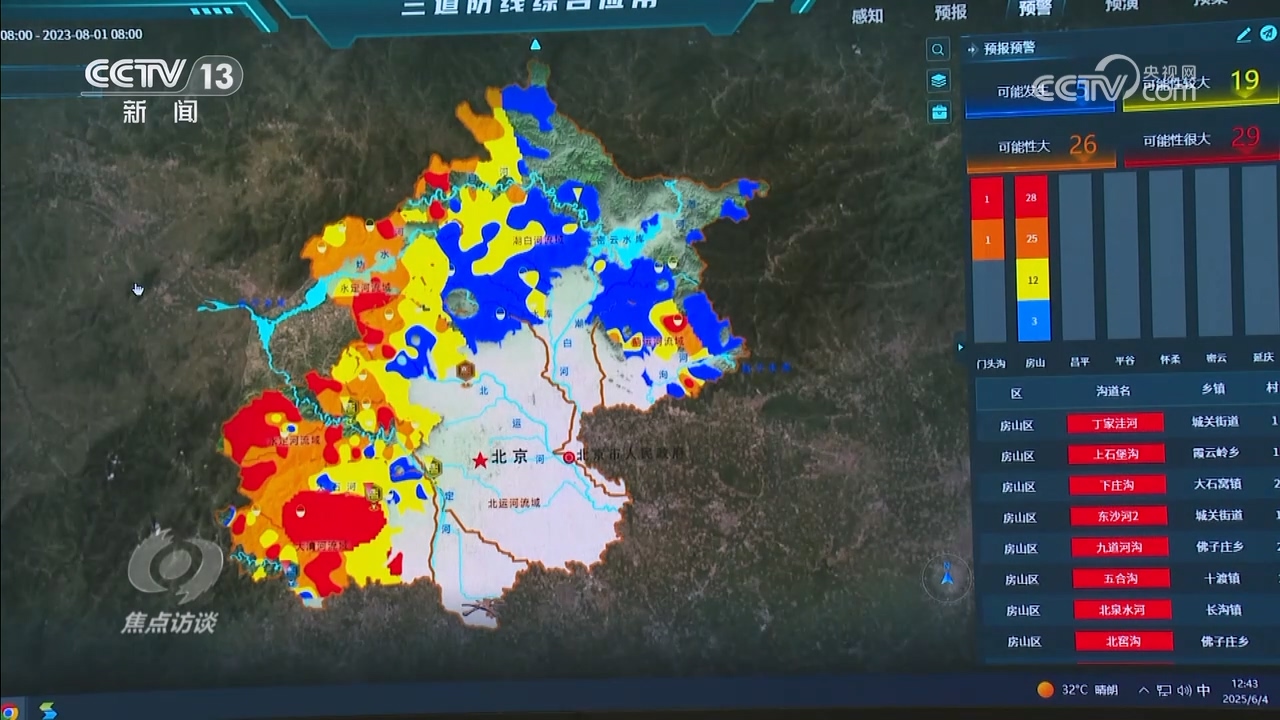 以北京为例,根据北京市水务局预测,今年汛期,北京北运河流域可能发布较高级别的洪水预警。房山、门头沟、昌平等区都是存在山洪风险较高的区域。为了实现精细化防洪避险,北京市还制定了“一村一策”方案,根据村庄不同地理位置和村民房屋的不同情况,划分出蓝、黄、橙、红四个等级。