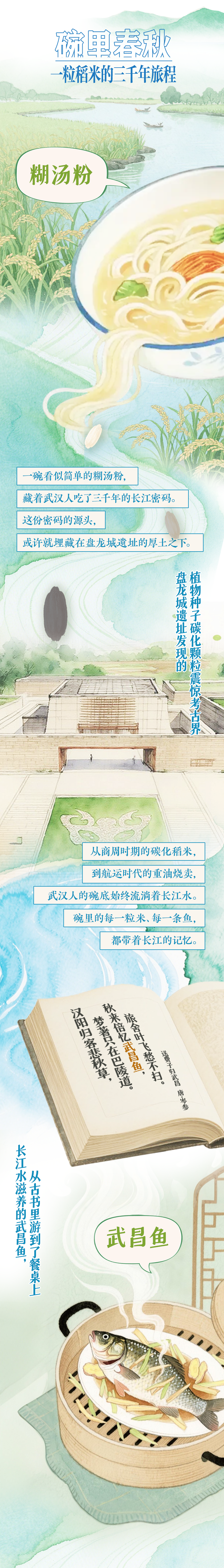 从商周时期的碳化稻米,到《楚辞》里的宫廷宴席,再到航运时代的重油烧卖,武汉人的碗底始终流淌着长江水。当遍布三镇鲜鱼糊汤粉店的老板们把熬好的鱼汤浇在米线上时,他们或许不知道,自己正在续写一段跨越三千年的饮食史诗——碗里的每一粒米、每一条鱼,都带着长江的记忆。