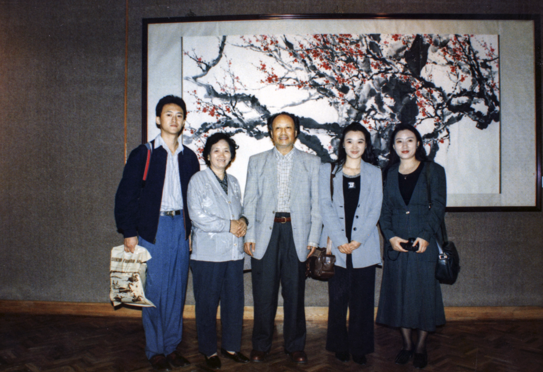 王子武作品前和全家合影