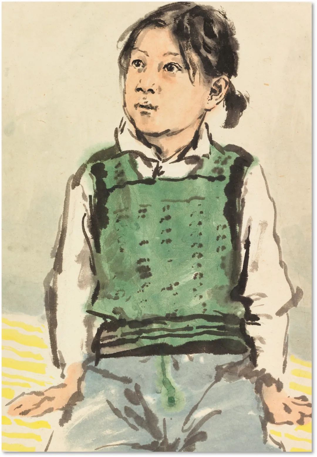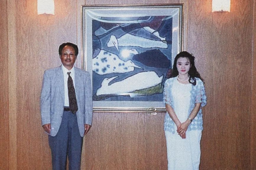 父亲一生淡泊名利,常无偿赠画助人,父亲的艺术精神高尚而辉煌,父亲的艺术作品必将传之久远。父亲守正创新的艺术观深刻塑造了我的创作基因。父亲强调“笔墨无中外”,曾以水墨临摹列宾《黑女人》,我融合日本装饰风格创作的《艺术大师》等“东方印象派”作品,获得父亲盛赞。