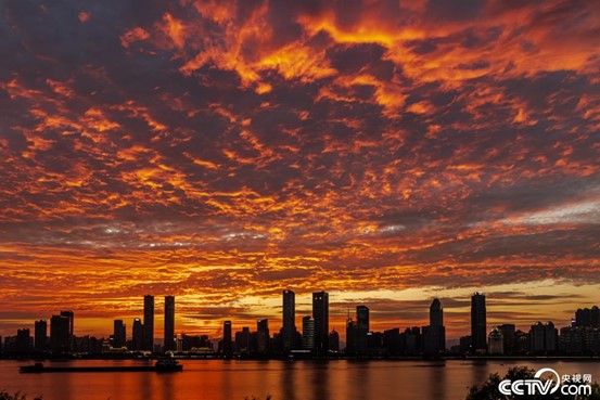 江西南昌,红谷滩现绚丽晚霞。