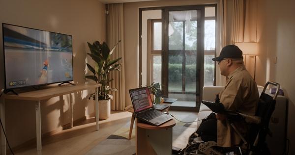受试者术后一个月脑控玩赛车游戏。本组图片由中国科学院脑科学与智能技术卓越创新中心提供