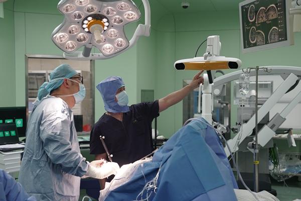 复旦大学附属华山医院与中国科学院脑智卓越中心形成了“楼上手术楼下研发”的协同模式。手术当天,团队借助高精度导航系统,在受试者清醒状态下,将两根超柔性电极植入其大脑运动皮层指定区域。