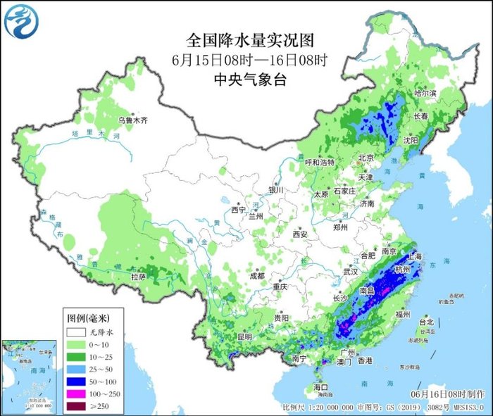 央视网消息:据中央气象台消息,昨日(6月15日),南北方均有强降雨出现,气象监测显示,广东北部、湖南东南部、江西中东部、安徽东南部、浙江中西部、上海等地出现暴雨,局地大暴雨;内蒙古东南部、辽宁西部、吉林西部等地出现大到暴雨。