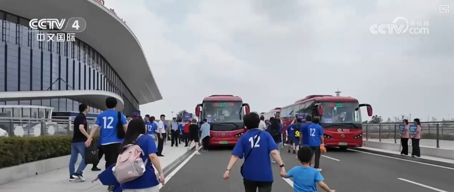 中午12时30分,列车准时到站,25辆接驳大巴已在站外就位。在现场工作人员的引导下,球迷们有序换乘,奔向球场。