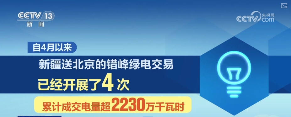近期,我国首次通过市场化交易实现了跨省错峰绿电交易。自4月以来,新疆送北京的错峰绿电交易已经开展了4次,累计成交电量超2230万千瓦时。