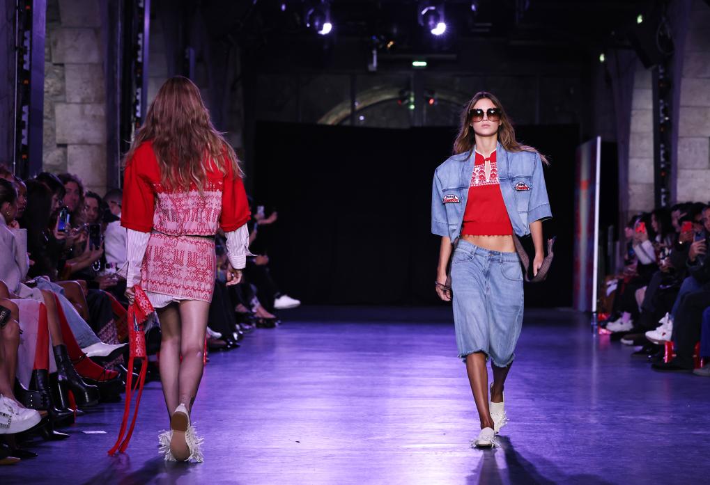 模特在法国巴黎举行的Vivienne Tam × 黎族2025春夏新品发布会上展示服装。新华社记者 高静 摄