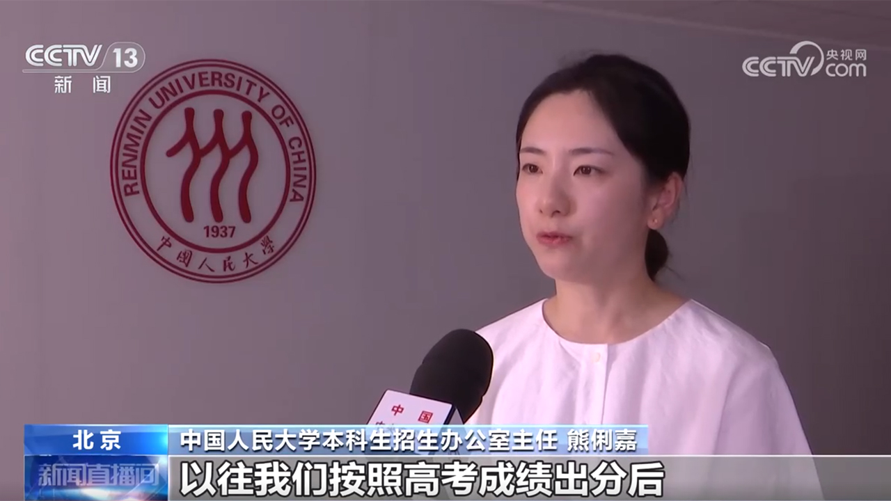 中国人民大学本科生招生办公室主任 熊俐嘉:以往我们按照高考成绩出分后再入围校考的话只有400多人,今年我们改为高考出分前校考,一共有5000多人参加了笔试。所有报名的考生,我们都给予了初试的机会。给一些学科特长的考生有了更多新的机会。