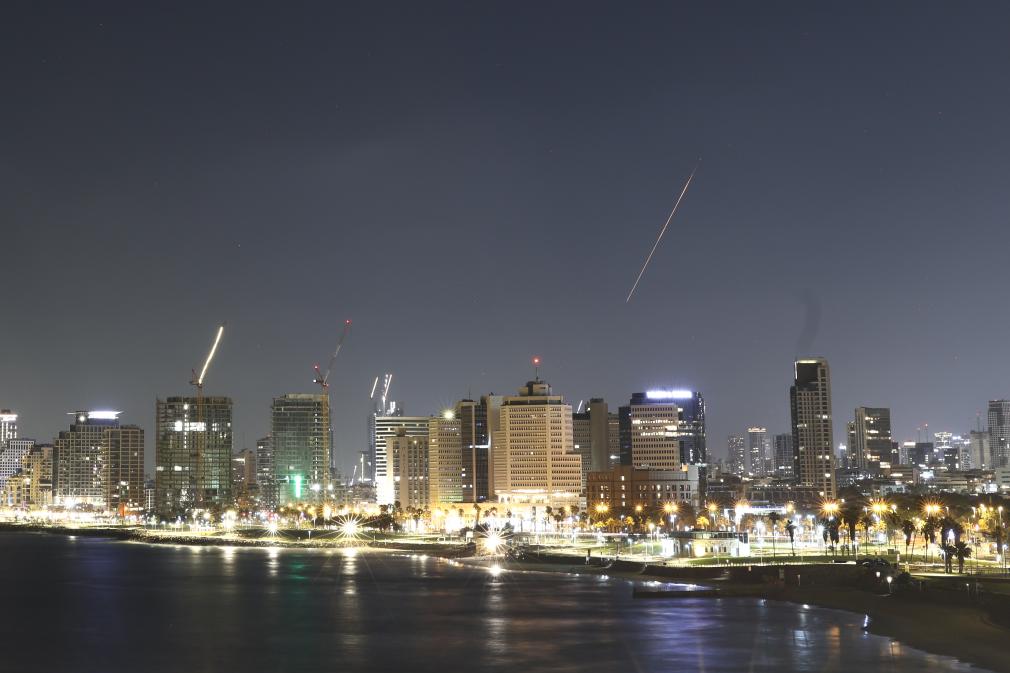 6月19日凌晨,在以色列特拉维夫,防空系统发射拦截弹拦截来袭的导弹。18日晚,伊朗宣布对以色列发起“真实承诺-3”行动的第十二轮打击,并向以色列发射“泥石”弹道导弹。新华社发(贾马尔·阿瓦德摄)