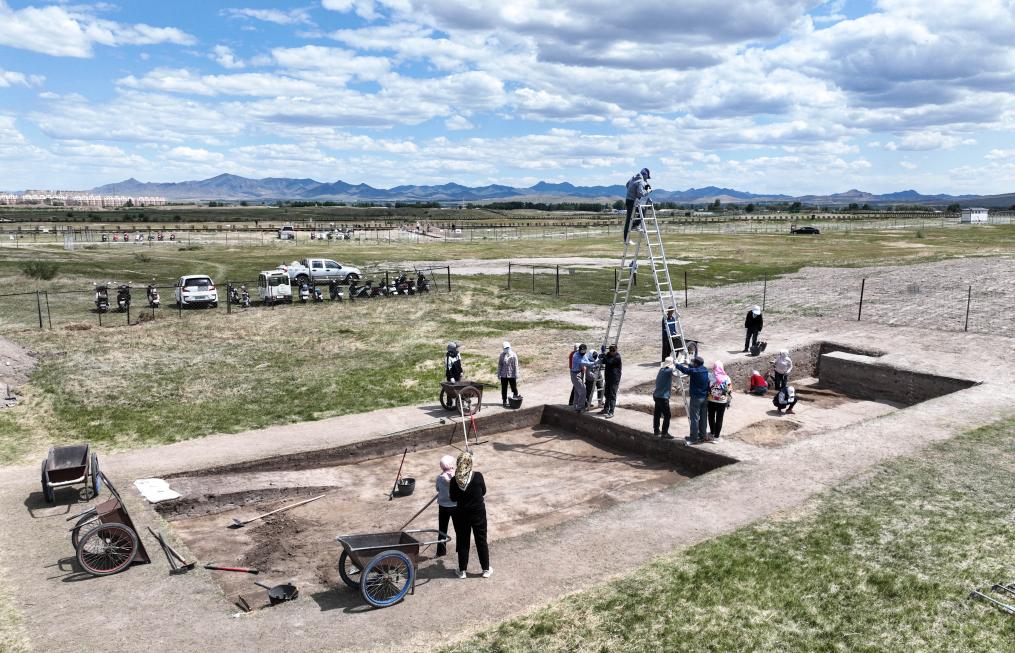 考古人员在辽上京遗址进行发掘(无人机照片)。新华社记者彭源摄