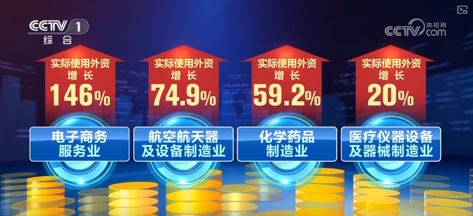 商务部最新数据显示,2025年前5个月,高技术产业实际使用外资1090.4亿元人民币。其中,电子商务服务业、航空航天器及设备制造业、化学药品制造业、医疗仪器设备及器械制造业实际使用外资分别增长146%、74.9%、59.2%和20%。