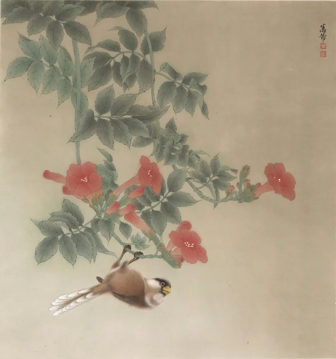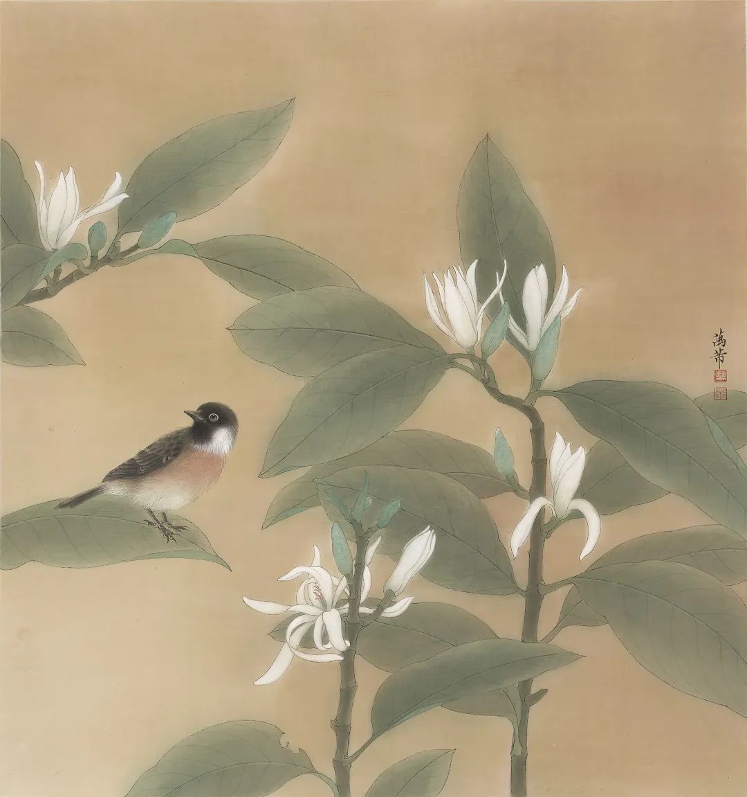 万芾是上海实力派花鸟画家,她笔下“花鸟世界”中的二十四节气,作品色彩丰富,构图现代而不失传统韵味。