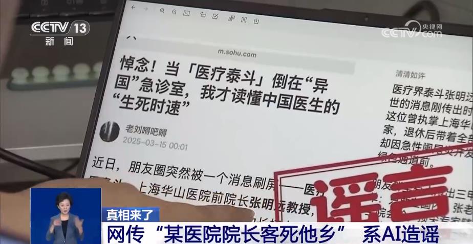 正在阅读:真相来了!网传“某医院院长客死他乡”系AI造谣