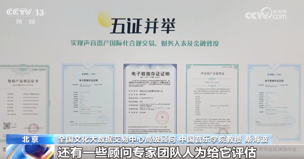 全国文化大数据交易中心高级顾问、中国音乐学院教授桑海波称:“评估基于第一个叫价值元点,它对人的自身进步发挥作用了,比如文物级别的声音资产,是哪个时代的,到底是哪一年的,那个是价值元点;另一个评估的依据是价格原点,比如说这个磁带或者这本书卖了多少钱,杂志当中一共有多少篇文章、有多少字,国际上都有一个通识的算法,还有一些顾问专家团队人为评估。”