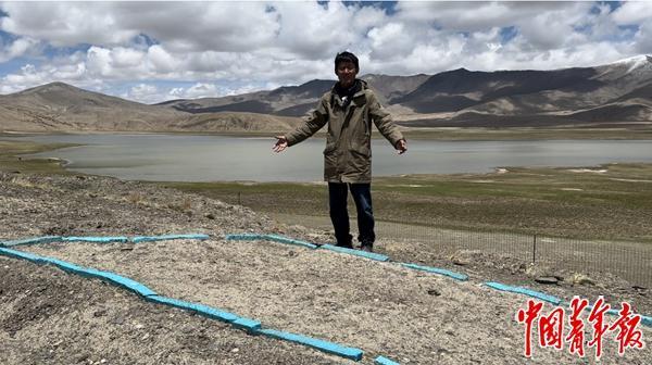 夏格旺堆在玛不错遗址。中青报·中青网记者 张玘云/摄