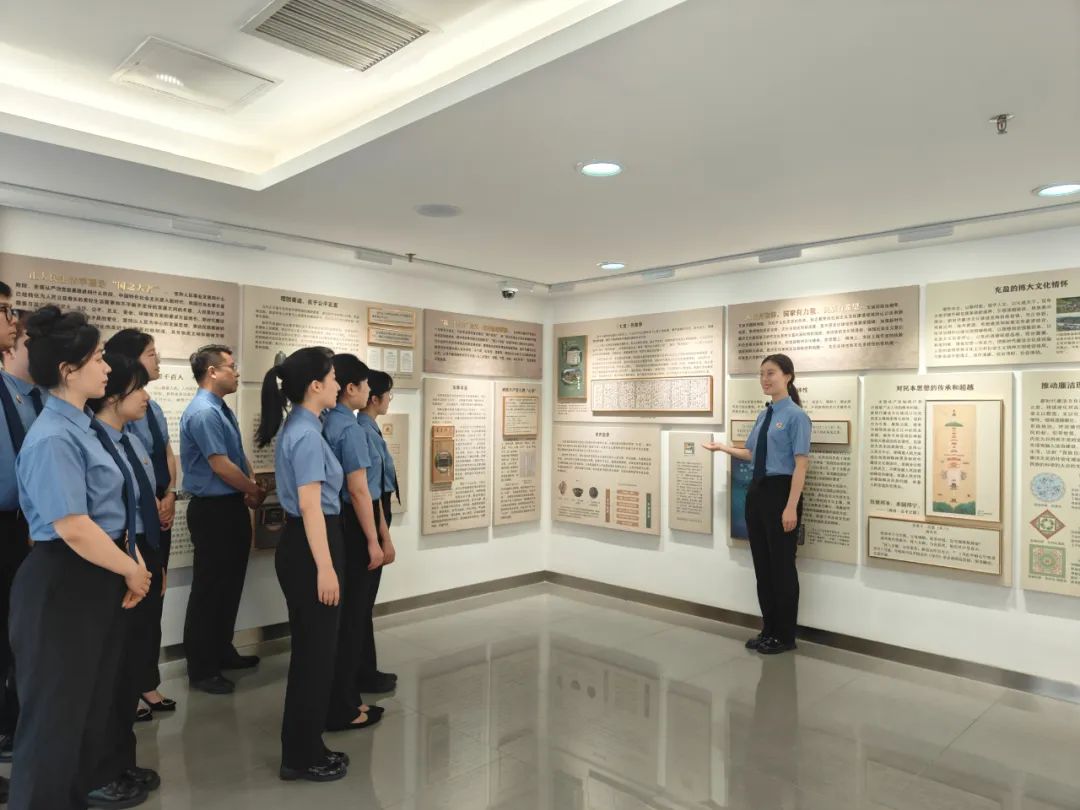 西城区检察院干警在廉洁文化园地新时代廉洁文化建设展厅开展学习活动。