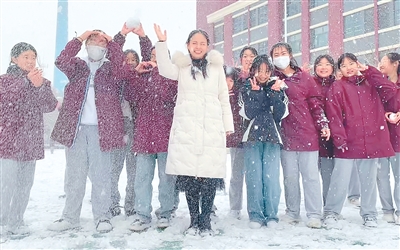 河北省石家庄二中润德学校教师郭亚会(中)和学生在一起。