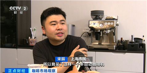 上海市民 宋辰:每天都会喝,买了半自动咖啡机,也有手冲的设备,手磨的咖啡机相对会便宜一些,差不多是1000元到2000元。