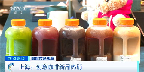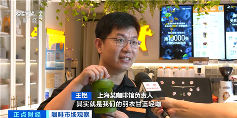 上海某咖啡馆负责人 王铝:我手里是羽衣甘蓝轻咖,很多健身人群、年轻人都很喜欢这款,日常一天能卖四五百杯,这些新品销售能占当日整体销售杯量的一半以上。