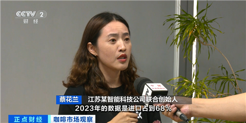 江苏某智能科技公司联合创始人 蔡花兰:从家用咖啡机市场来分析,2023年的数据是进口咖啡机占到68%,国产咖啡机是32%,我们预测到2028年,数据可以反过来,国产占68%。