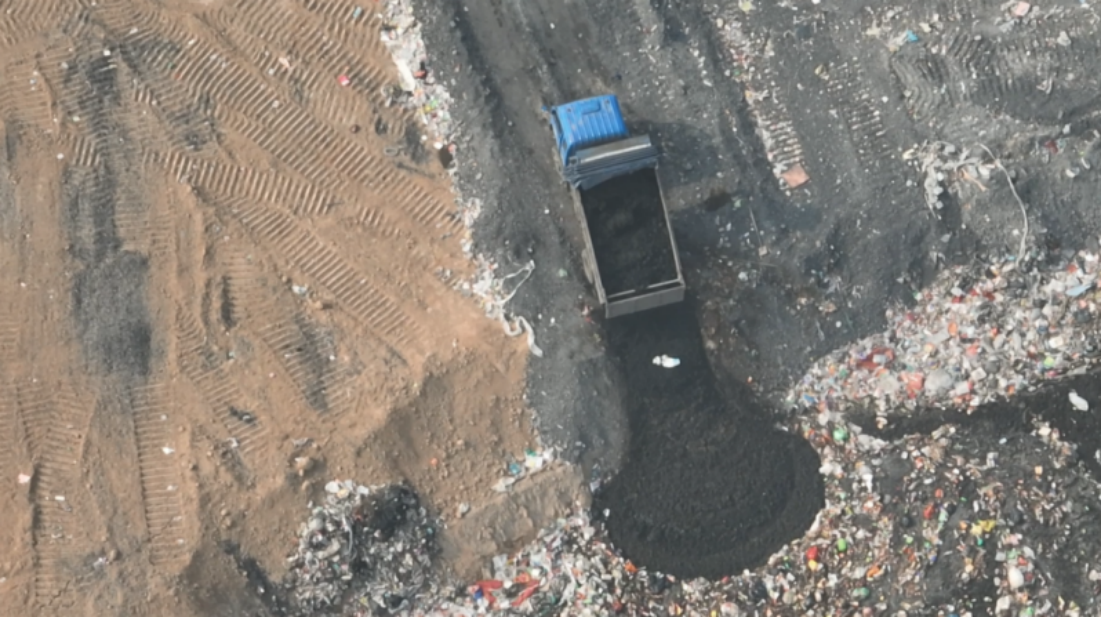 图3 2025年2月21日,督察组暗查发现,临汾市襄汾县生活垃圾填埋场违规填埋污泥。