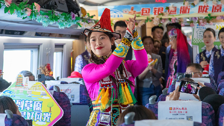 工作人员载歌载舞庆祝包银高铁全线贯通运营